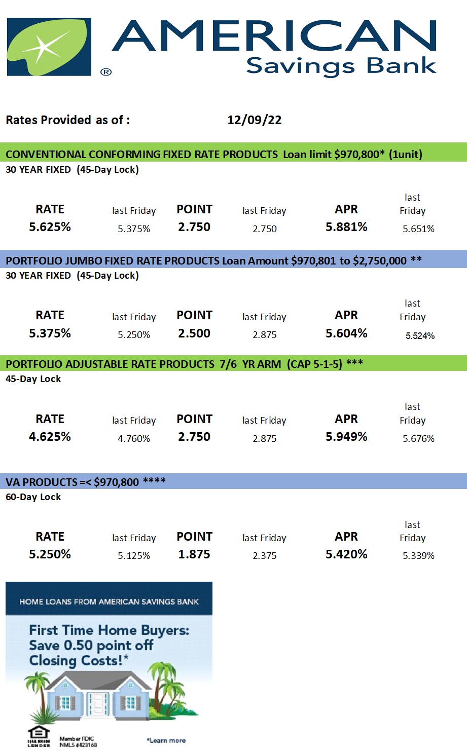 American Savings Bank Weekly Mortgage Rates Update December 9th 2022