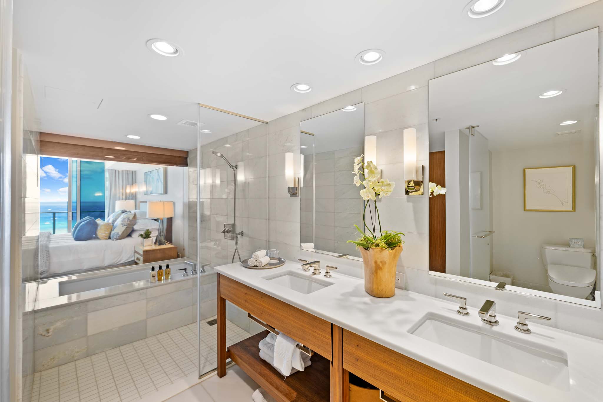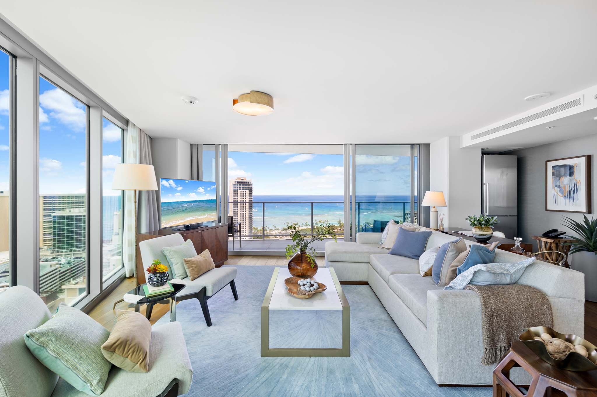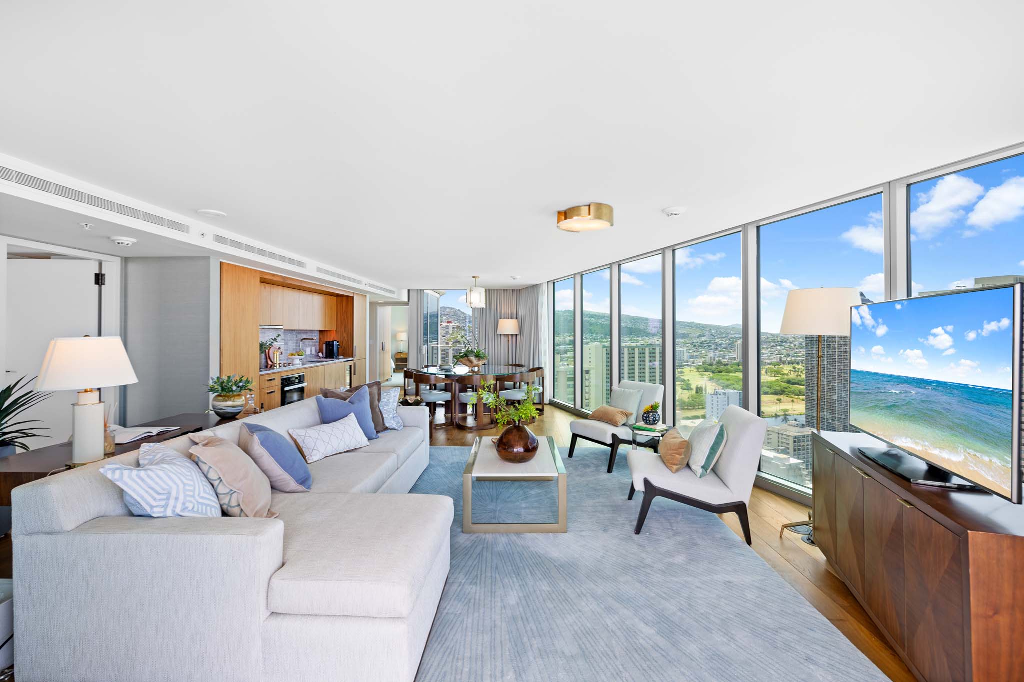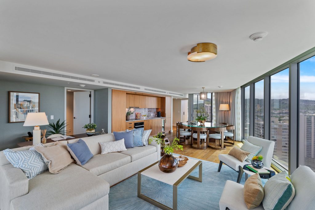 Step inside this fully furnished 3-bedroom oasis to elevate your everyday experience. This exceptional high-floor corner unit in Diamond Head Tower (Tower 2) provides nearly 270° panoramic views, allowing you to enjoy both ocean and mountain vistas. The spacious layout invites ultimate relaxation, leading to an expansive lanai facing the ocean and another lanai that faces the majestic mountains, and a soaking tub. The Ritz-Carlton Residences is pet friendly. An array of lifestyle options, including room service, on-site and nearby restaurants, cleaning and custodian services, and concierge assistance are available. A residential team is at your service. Comprehensive hospitality creates a comfortable way of life. Conveniently situated in the heart of Waikiki, you’re just moments away from world-class shopping, delectable dining, and the beach. Live the island dream in this unparalleled paradise!