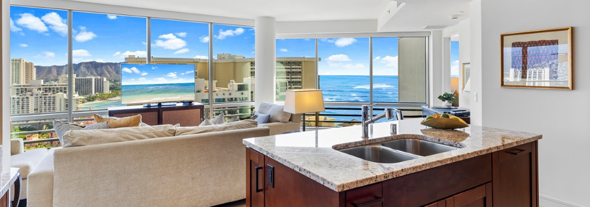 Just minutes from Waikiki Beach, this elegantly upgraded corner unit offers true resort-style living. Enjoy convenient access to a wide variety of nearby restaurants, as well as on-site dining and room-service options available through the hotel. Take in sweeping panoramic views of the city skyline framed by the mountains, Koko Crater and Koko Head in Hawaii Kai, Diamond Head, and the iconic Pink Palace with Waikiki Beach as its backdrop. Relax on two separate lanais: one off the primary bedroom facing the ocean and the other off the living-dining area with beautiful mountain views. The residence features a well-equipped kitchen, generously sized bathrooms, ample storage—including a walk-in closet in the primary bedroom—and thoughtful details throughout.